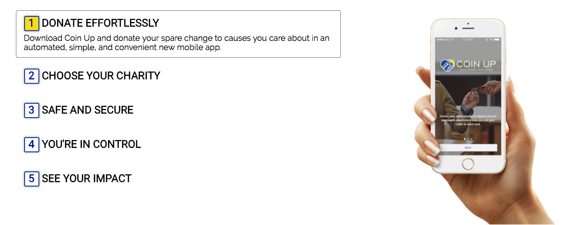 Coin Up is available on Android and iOS devices. Donations are tax deductible.